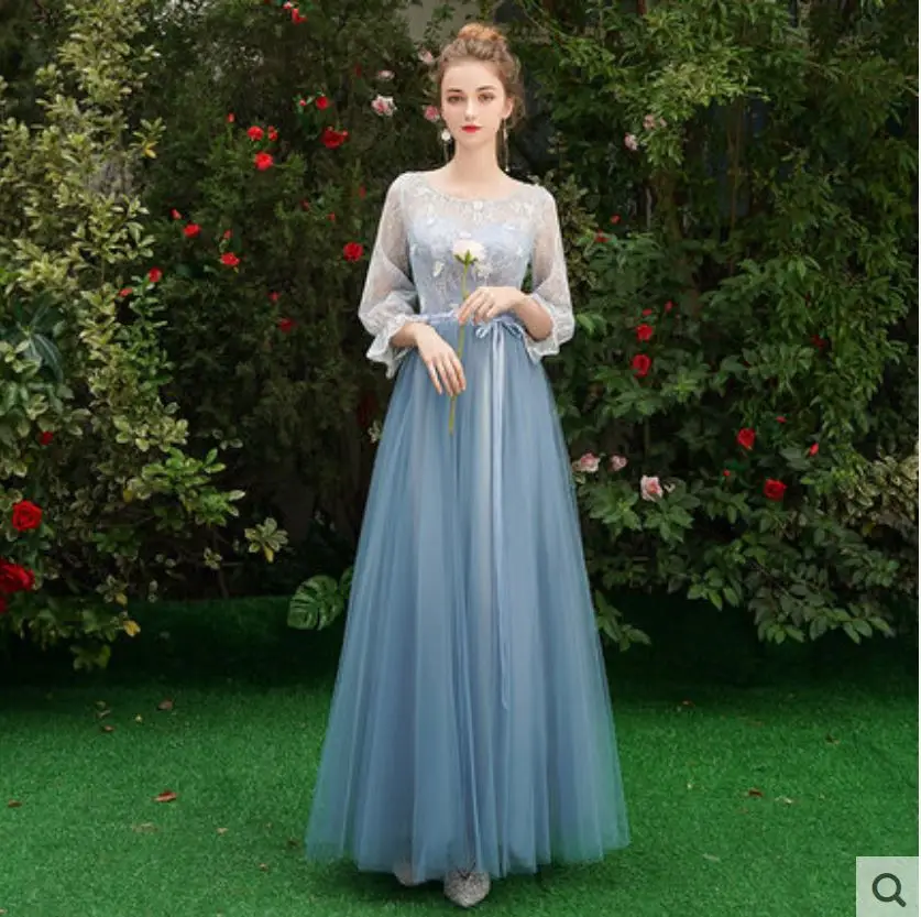 Dusty blue bridesmaid dresses new lace 6 style wedding guest dress long robe demoiselle d'honneur p